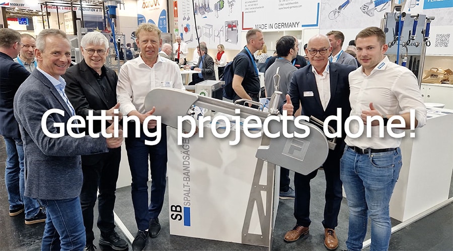 > Die Firma Freund hatte um die zehn Produktentwicklungsprojekte gleichzeitig laufen und gefühlt wurde nichts vernünftig fertig. Das hat viel zu lange gedauert und der Frust breitete sich schon aus. Eine neu entwickelte Spalt-Bandsäge sollte auf der Anuga-Messe 2024 vorgestellt werden.